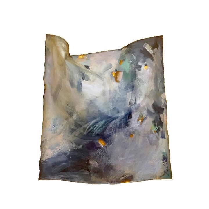 “Sheree Dornan is an established multi-discipline artist who works across and between fields of painting, textile, installation and garment. Favouring a harmonious colour and a light filled semi-abstract aesthetic, Dornan’s works are layered considerations in texture and tonal softness, punctuated by assured marks of greater contrast that allude to the motifs of landscape or the spaces found in nature. Often accented in gold, Dornan’s signature style exudes a light touch that is serene and composed due to the considered palette and rich tactility of crumpled forms and draping folds, whether in garment, installation or painting.